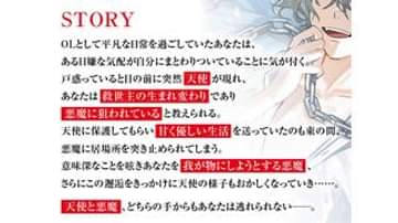 ※アダルトボイス(ASMR)作品のため、音声を中心にお楽しみいただく内容です。シナリオ:鷹村マルシェイラスト:京一声優:彩和矢【STORY】OLとして平凡な日常を過ごしていたあなたは、ある日嫌な気配が自分にまとわりついていることに気が付く。戸惑っていると目の前に突然天使が現れ、あなたは救世主の生まれ変わりであり悪魔に狙われていると教えられる。天使に保護してもらい甘く優しい生活を送っていたのも束の間、悪魔に居場所を突き止められてしまう。意味深なことを呟きあなたを我が物にしようとする悪魔、さらにこの邂逅をきっかけに天使の様子もおかしくなっていき……。天使と悪魔、どちらの手からもあなたは逃れられない――。【登場人物】名前:エリック(Eric)外見年齢:27歳身長:183cm王子様のような見た目の、笑顔がまぶしい天使。フワフワと癒されるような喋り方で人の心をほだす。しかし、本質は他人に興味がなく、相手の感情に無頓着。かつて恋人同士だったあなたに対しては、唯一感情らしいものを抱けるが、根は自分本位で、自分とあなただけが幸福になれればいいと考えている。===あなたいたって普通なOL。平凡に就職し事務をやっていたが、救世主の生まれ変わりとして天使と悪魔に狙われる。【トラックリスト】1.『プロローグ』(01:21)平凡な日常を送っていたあなたを見つめる二つの影。天使と悪魔、あなたはどちらを選びますか?2.『もう二度と君を失いたくないんだ』(24:30)「ふふ、乳首を軽く擦っただけなのに、身体びくびくしてる。敏感なんだね。」※ハグ、キス、囁き、耳舐め、クンニ、手マン3.『恥ずかしがらないでちゃんと答えて』(13:34)「そうそう、上手……その調子だよ。少しずつ奥まで入っていってるから……もう少し頑張って……」※耳舐め、キス、クンニ、挿入(正常位)、中出し、潮吹き4.『手荒な真似はしたくなかったんだけど……』(21:40)「誰も手だしできないよう、君は僕のものだっていう証、たくさんつけておかないと……」※プレイ内容:拘束、耳舐め、キス、乳首責め、手マン、潮吹き、連続絶頂5.『一番奥に出してほしいんだよね?』(24:09)「腰動かすたびに、さっき出したザーメンと君の愛液が、おまんこの中でかき混ぜられてるのがわかるよ……」※キス、挿入(正常位→対面座位)、キスハメ、種付けプレス、大量中出し天使とは前世で恋人同士だったが、少々その行動に疑問を持っていた。押しに弱く流されがち。