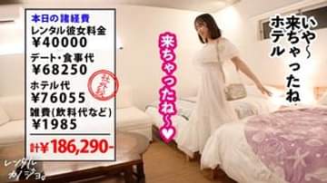 【巷で話題のレンタル彼女=恋人代行サービス。で働くアイドル級美少女<素人娘>に、ハメ撮り交渉!】こんな可愛い女子がレンタルカノジョとして働いているなんて凄い時代になったものです。普段は広告業の広報としてOLしてるまいちゃん、21歳。デート中に突然手を繋いで来たり、上目遣いに顔を覗き込んできたり、男心を弄ぶ天性の小悪魔です。鎌倉の小町通りを買い食いデートした後に、プールに移動。水着に着替えたら、こんな巨乳どこに隠してたんだってくらいの隠れ巨乳が露わになってフライング勃起必至。ちなみにカップ数は「FとGの間をさまよってる」くらいだそうです。一番興奮するヤツや。なんとか口説き落として本来禁止のホテルに移動。昼間とは雰囲気が変わって、ベロキスのうっとり顔がたまらなくエロい…デフォルトで勃起してるスケベな乳首もアイドル顔とのギャップが最高。ねっとりフェラと唾垂らし手コキが最高に気持ち良過ぎて、早くもイキそうになります。「えへへ、タマぴくぴくしてるよ?」と嬉しそうなまいちゃん。「ゴム、別につけなくてイイけど…」とモジモジおねだりされたので生チ◯コをゆっくりインサート。奥を軽く突いただけでビクビクしながら「あぁイっちゃいそうっ」と悶絶する雑魚マ◯コ、たまりません。外に出すか聞いたら「んーん、中に出してっ」と懇願。「気持ちイイっ!!イっちゃう!!」と絶頂するまいちゃんのマ◯コにどくどく精子を流し込んでやりました。少し休憩を挟んで2回戦に突入。パイズリしながらチ◯コをぺろぺろ舐めてくるのが最高に卑猥です。ず~~~~っと全力でエロいフェラををしてくれる天使にガチ惚れしてしまいました。再び挿入して全力高速ピストンかましたら、「あぁダメすぐイっちゃう!!」とあっという間に絶頂。あらゆる対位でヌルてかBODYを堪能してイカせまくり。「イって良いよっ私もイっちゃうぅう!!」とびくびく痙攣。