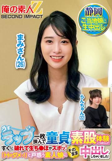 本物素人ガチナンパ!静岡出張特別編!某県立大学4年生らんちゃん(22)やってきました静岡。結構な田舎ですからアバンチュール求めてる美人が多めらしいです。今回協力してくれたのはらんちゃん。童顔巨乳な色白おっとりガールです。本題「童貞くんのお悩み解決してくれませんか?」まずは勃起不全という悩みを薄いラップごしの素股で難なく解決。そして筆おろし。童貞君の可愛さに膣きゅんしているらんちゃん。もはやチンポ欲しい顔wということで難なく解決。あとは●のように暴走する元童貞君のピストンの気持ち良さに失禁してしまうレベルのイキまくりセックス。最後は中に出させてもらいました。ご協力ありがとうございました。----------------------------------------------------------本物素人ガチナンパ!静岡出張特別編!地銀勤務 営業事務まみさん(26)やってきました静岡。富士山の高さと美人さんの多さが日本一なのは有名な話。今回協力してくれたのはまみさん。落ち着いた雰囲気のある銀行勤務のインテリ女性です。清楚な見た目ですが結構下ネタもいけるくち。童貞君のお悩みに対して、下心がないからこそはっきりと応答してくれます。その感じがなんだかエロい。撮影している私はもうギンギンでした…我慢汁も…。そんなそこはかとないエロさを前に、早くも童貞君の勃起不全の悩みは解決。あとはぎんぎんになったチンポを挿入して筆おろしセックス。入れた瞬間に快感がまみさんの脳天を貫きます。相当チンポが堅かったんでしょう。歴代彼氏では感じたことない高揚感。膣奥をずちゅずちゅピストン。あまりの激しさに何度も絶頂wすっかり童貞チンポの虜になったまみさん。またいつか、よろしくお願いいたします!