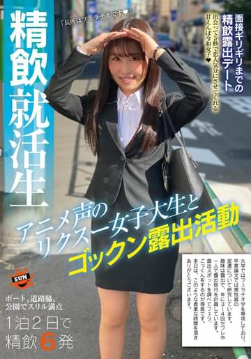 アニメ声で甘える就活生つむぎちゃん。面接前に精子をたくさん飲みたいと男と二人で露出デートを敢行。お外でドキドキ精飲して大興奮。ラブホに入ると甘えんぼモードでイチャイチャ。常にチ●ポを咥えたいと朝までフェラとザーメンをおねだり。翌日、寂しいとお別れフェラ。ザーメン汁を口で感じ「採用されますように」と面接へ向かっていった。(元品番SUN-037の作品から一部修正したものを再販売しております)